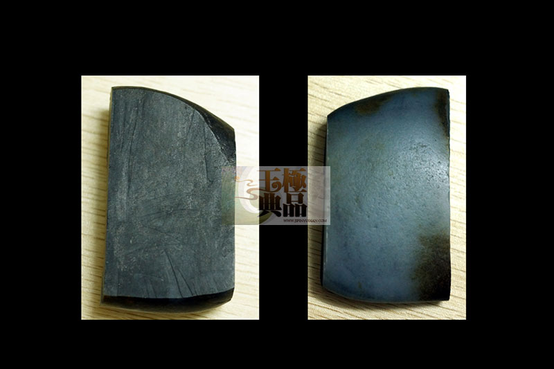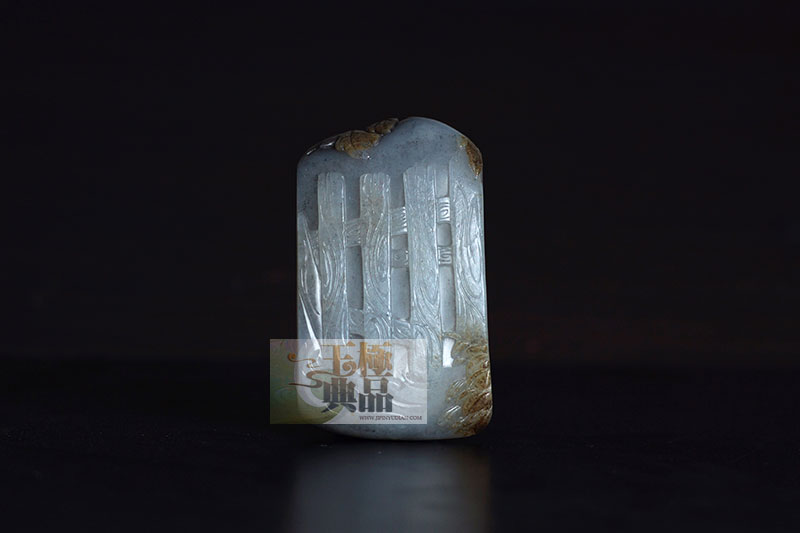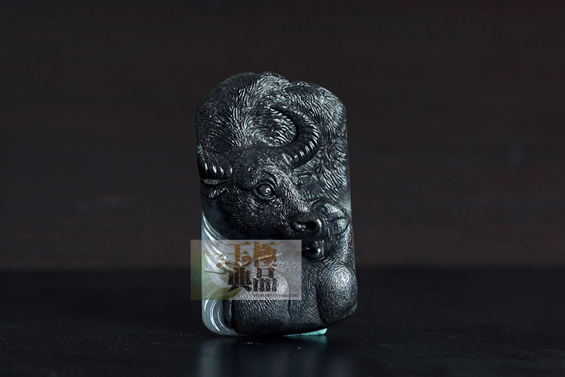 朋友自己切了块青花牌子,黑度不错,白度中等,带点黄皮色,拿来想做个牛的题材,因为朋友属牛,于是接手后。开始设计。由于料子切的不是很到位,所以先进行修形。把牌子尽量修整齐了,再进行绘制,先用正面的墨色做一大一小两只牛,在湖面上游动,大牛不时爱怜地伸出舌头。舔着小牛,而小牛很温顺地靠在大牛边,享受着爱抚。正面的墨色推深后,有白肉露出,正好做水面,再做点浮萍和波纹,增加了动感,背面的皮色做点杂草和树叶,河岸边,做围栏围住,作品采用了写实的表现手法,把家庭的温馨一幕刻在了这片小小的玉牌之上,作品完工后朋友甚是喜欢,最后定名为——舔犊情深.