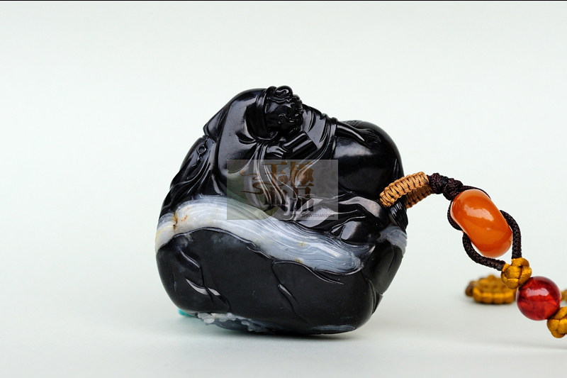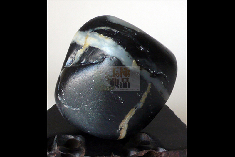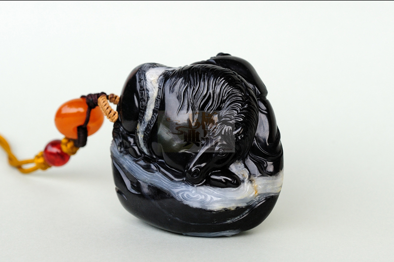 自己手上的一块原料,一直放着,没空去做,新年闲暇之余,终于得以把它请出来,进行了细致的分析和酝酿,这是块和田青花籽玉,黑度相当不错,带有多处白肉,尤其是横向的那条白肉,贯穿前后,垂直方向有条僵,干扰了整个画面。如何去借掉它是重中之重,因此极品玉典经多次推敲,最后决定,依料型,做一传统题材(伯乐相马),做一匹高大健硕的良驹,卧于河边,低头垂饮,僵线巧做成马鞍,前后贯穿的白肉,做成流淌而过的小河,背后,伯乐躬着身躯,一手拿书谱,一手轻轻地在抚摸良驹的身体,嘴微微抖动,象是不停地在说:好马。。好马啊!整件作品风格,在传统题材的基础上加以变化。追求的是雕塑的感觉,在尽可能避掉缺陷的同时,力求真实。体现强健的肌肉感,是极品玉典自己很喜欢的一件作品。